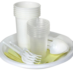 Тарелка плоская, вилка, нож, стакан 0,5, салфетки)